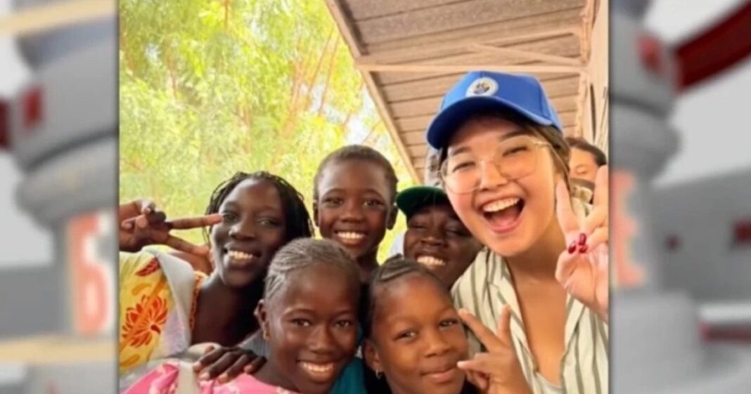 Астаналық Данель Берсебаева Сенегал астанасы Дакарда жергілікті мектептің бастауыш сынып оқушыларына сабақ беріп жүр.
